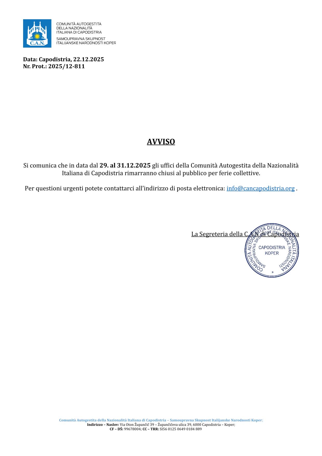 Avviso chiusura uffici
