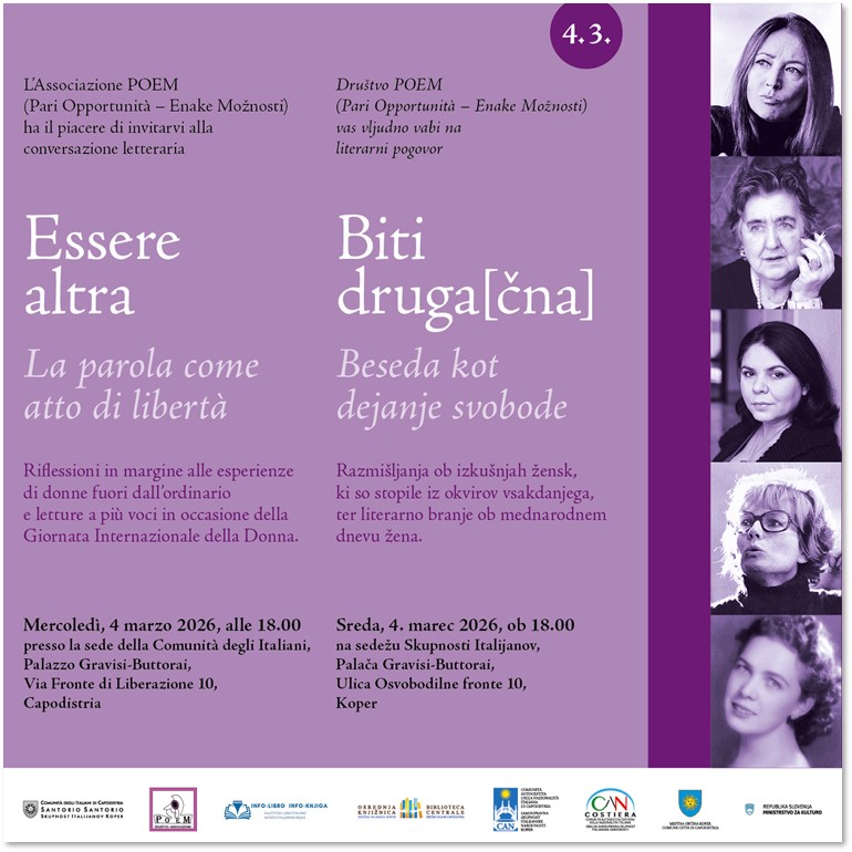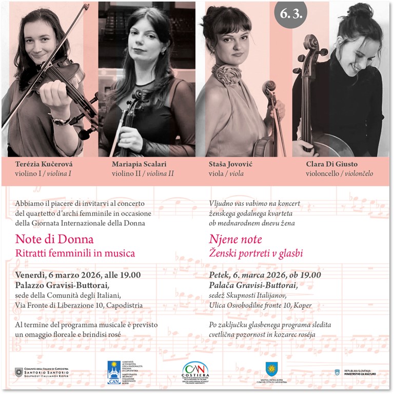 Saranno due gli appuntamenti proposti dalla Comunità degli Italiani “Santorio Santorio” in ricorrenza della Giornata Internazionale della Donna.